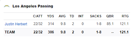 And this was his stat line for last night’s game. Yes, I know the Raiders are a bad defense to begin with and they were missing their 4 best defensive players. But Herbert put up this stat line and it didn’t even look particularly hard for him. It was just kinda ho-hum, business-as-usual: