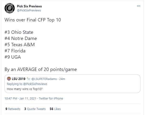 Is this year’s Bama team better than last year’s LSU team? It’s tough to say. I definitely think Joe Burrow was better than Mac Jones. That LSU team last year had a ton of talent on offense, too. Justin Jefferson, Jamarr Chase, Thaddeus Moss, Clyde Edwards-Helaire.