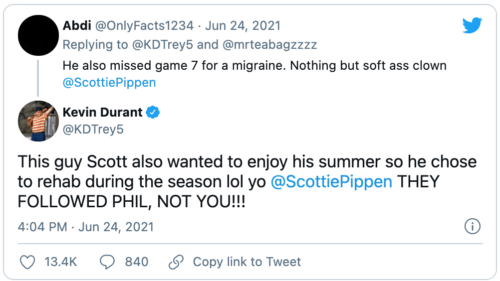 Kevin Durant, of course, was not just going to be silent while Scottie took shots at him:
