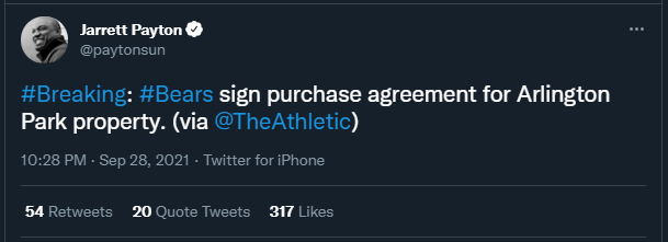 The Bears submitted a bid in June to buy the lot, and apparently now they won the bid have signed an agreement to buy the space. While this isn’t absolute and final confirmation that the Bears are moving to Arlington, it’s now gone beyond the usual “this is just a bluff” dismissals, which is how Chicago Mayor Lori Lightfoot characterized the June news.