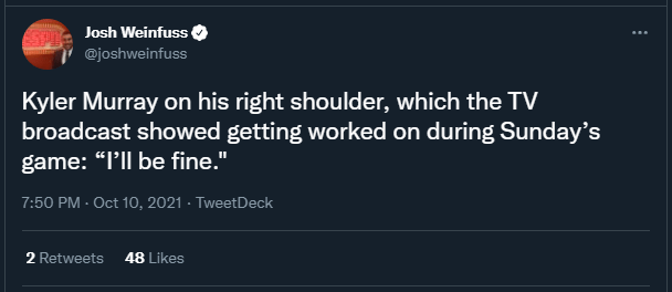 I did some digging on Twitter and only found a few tweets about Kyler’s injury: