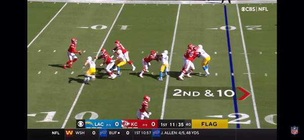 You can see how #32 on the Chargers lays off at the end and it allows Mahomes to pick up a few more yards. And if 42, the defender chasing him, would’ve just dove at him to try and shove him out of bounds, he probably would’ve gotten flagged for it because the refs would say Mahomes was “already going out of bounds.”