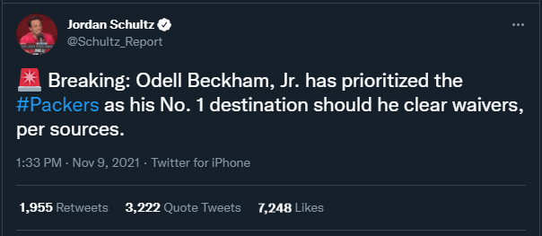 At this point it just depends on what teams are willing to pay him, and what salary he’s willing to take. The Packers, as we can see, only have about $4 million in cap space available. But it appears Odell is determined to play there and will take a pay cut to do so.