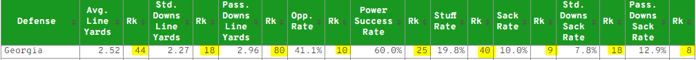 I’m assuming Georgia’s defensive line is as elite as it gets, and we’ve seen a few stats already up above, but we haven’t broken down Georgia’s defensive line the way we did with Bama’s.