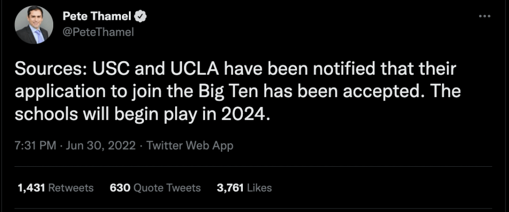 I mean, after this move, “The Alliance” (remember the Big Ten-Pac 12-ACC coalition?) is now pretty much dead. The Big Ten just massively stabbed the Pac 12 in the back.