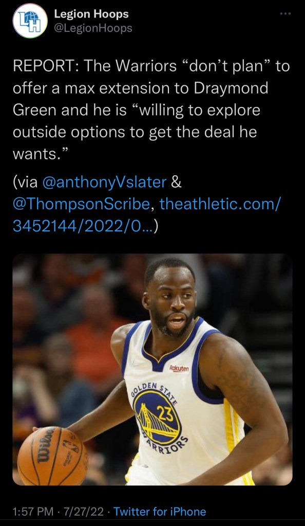 It’s still hard for me to envision the Warriors playing hardball with Draymond and letting him walk, or trading him to at least get something in return for him.