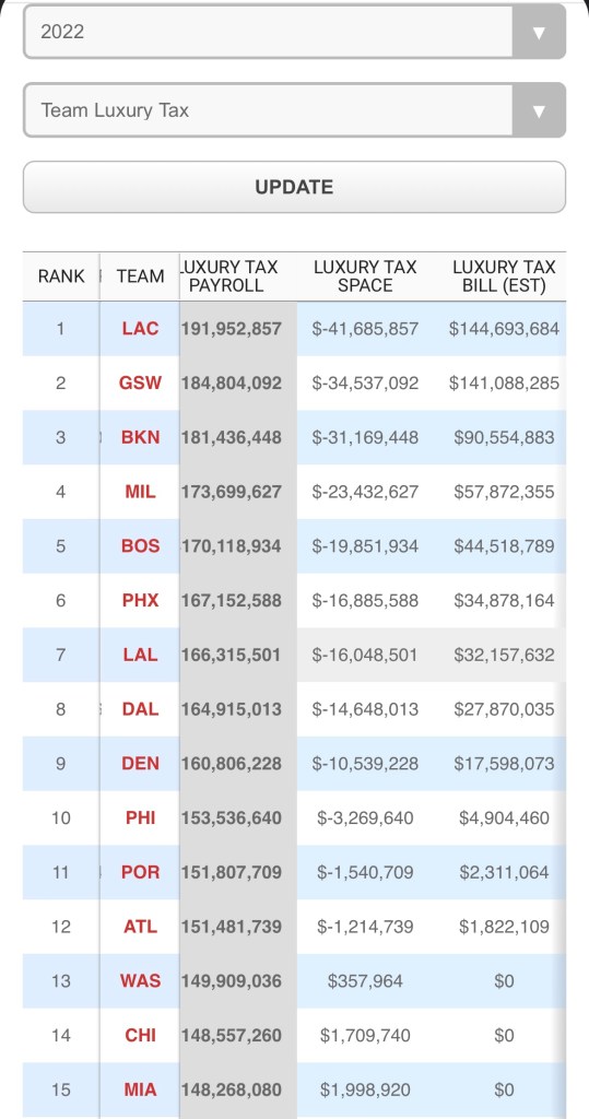 If these figures are correct—or more accurately, if I am looking at the right tables on Spotrac, because the NBA salary cap is extremely confusing and I might have botched this—then the Warriors had a total bill of about $325 million for this 2022 Championship season.