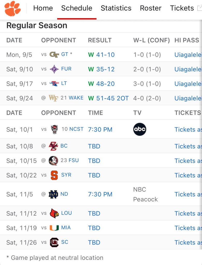 - Joel Klatt, who I otherwise think is the best in the business and who I cannot say enough nice things about, was saying that Wake Forest always puts up points on Clemson’s defense, but that’s not the case: