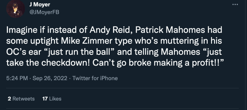And Fields will not break the streak anytime soon because the Bears just have no idea how to build a competent offense. It’s ingrained in the organizational culture–they are stuck in 1985. They haven’t the faintest idea how to build a modern NFL team.