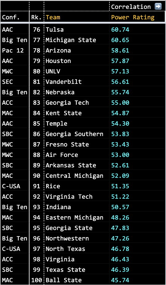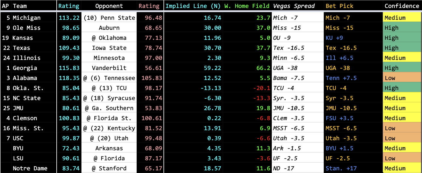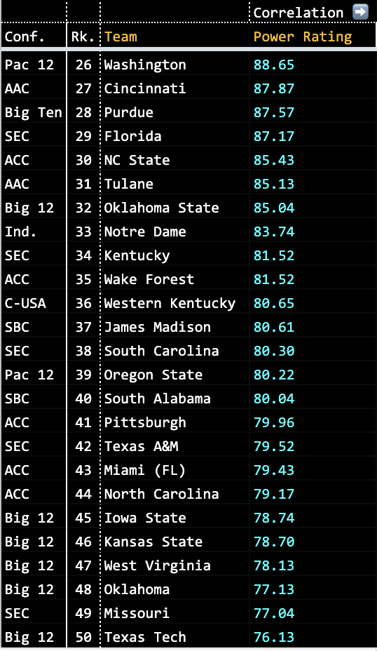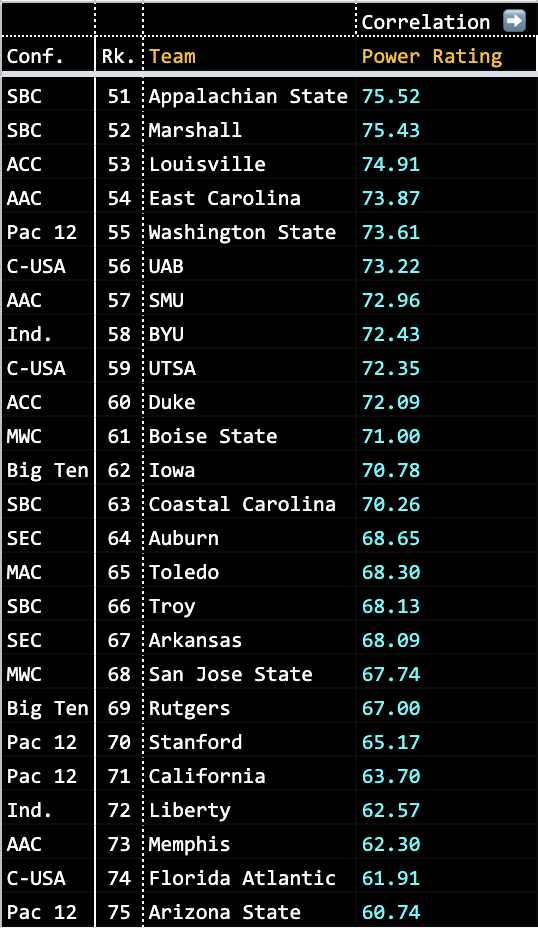 Just one caveat for the gambling picks: the numbers get less reliable the further down the list you go. That’s why I stick to the top-25, and mainly Power Five teams with only a few exceptions here and there.