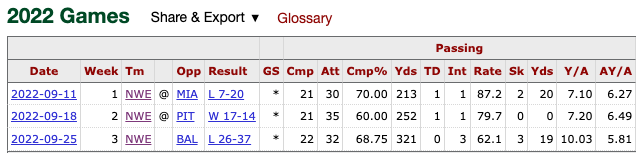 Now, of course, the Lions and the Browns are two of the worst defenses in the league, so take it with a grain of salt. But it was also Zappe’s first two true NFL starts of his career!
