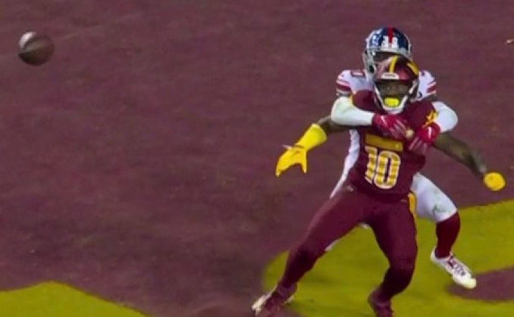 The Commanders-Giants game that ended when Washington’s Taylor Heinicke failed to connect with Curtis Samuel on a pass in the endzone? That was pass interference on the defender. He was basically piggy-backing on Samuel. But since PI is not reviewable, that was the ballgame.