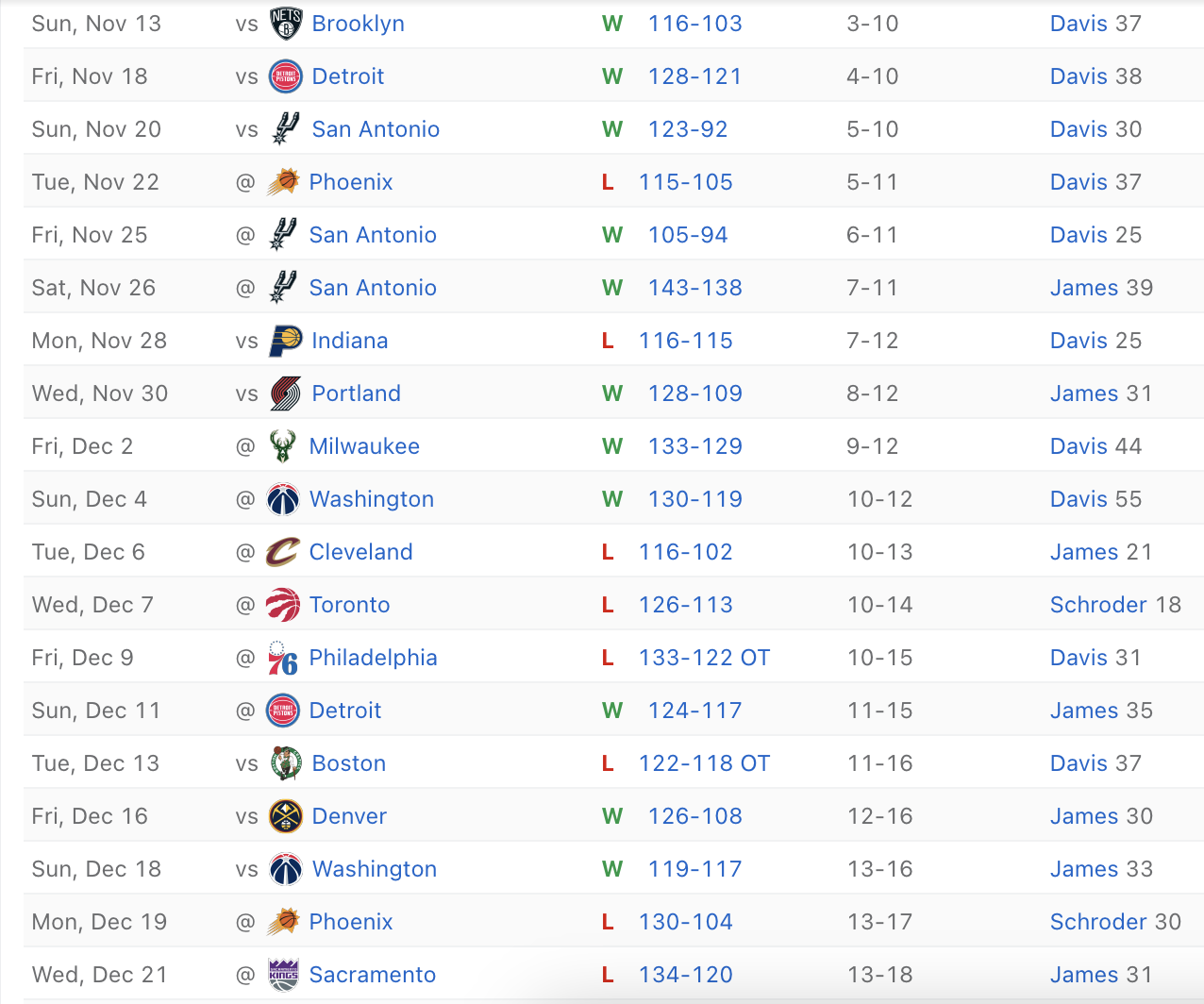 Obviously they will get reinforcements when AD, Reaves and Lonnie come back from injury, but they still need a little more to truly be a championship contender. And because of the terrible 2-10 start, they are really in an uphill battle just to make it to the playoffs.