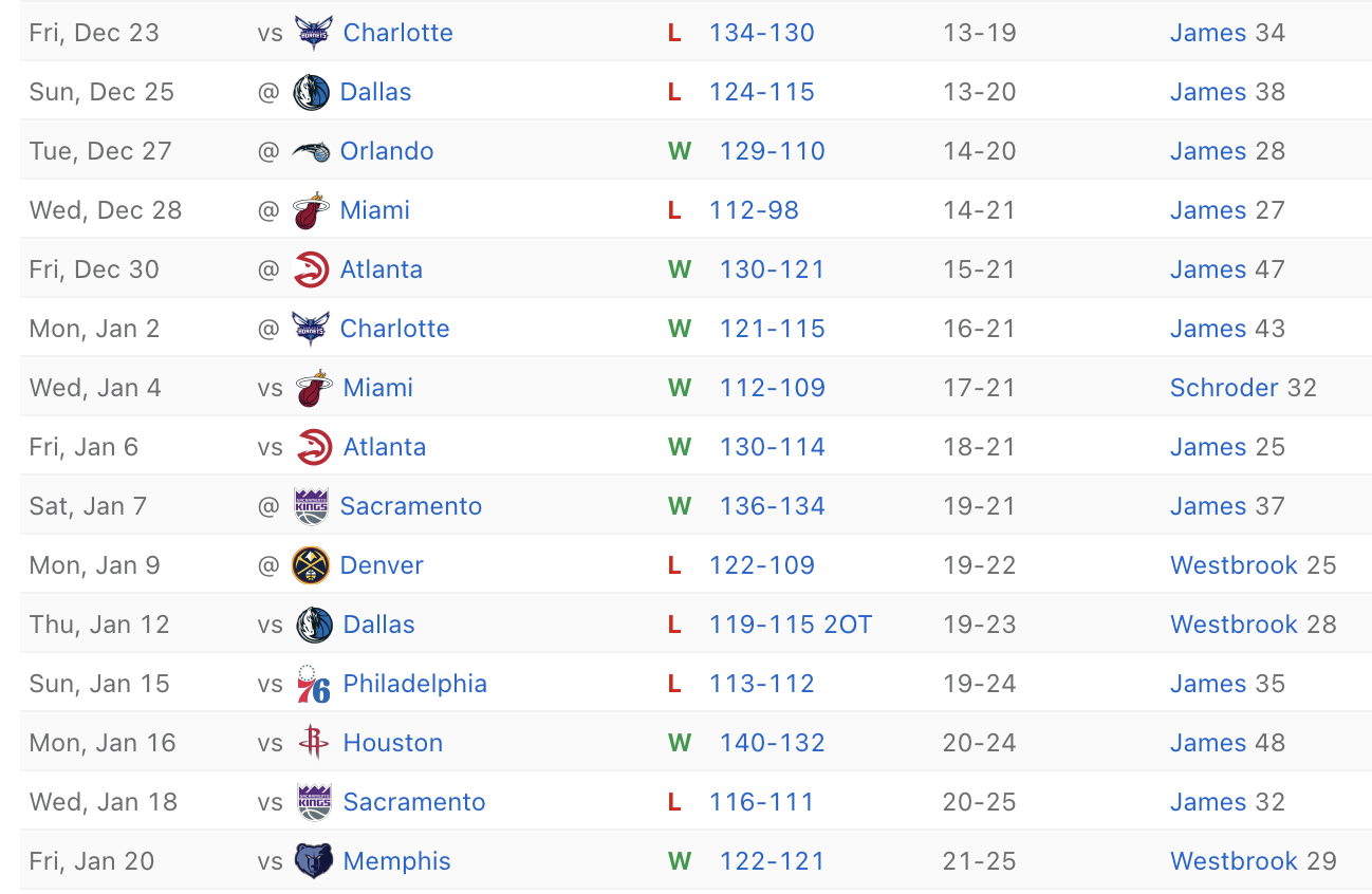 The Lakers now sit at 22-25 after a 2-10 start, meaning they’re a respectable 20-15 since November 13.