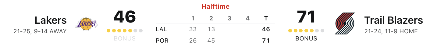On Sunday, the Lakers completed a highly improbable comeback win over the Blazers, who are neck-and-neck with them right now in the standings, in a game in which the Lakers found themselves down 71-46 at halftime.