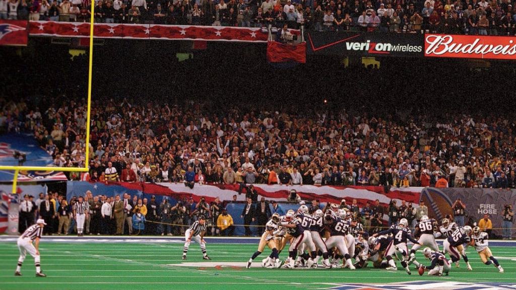 Super Bowl XXXVI; Patriots 20, Rams 17 (Dark team won)