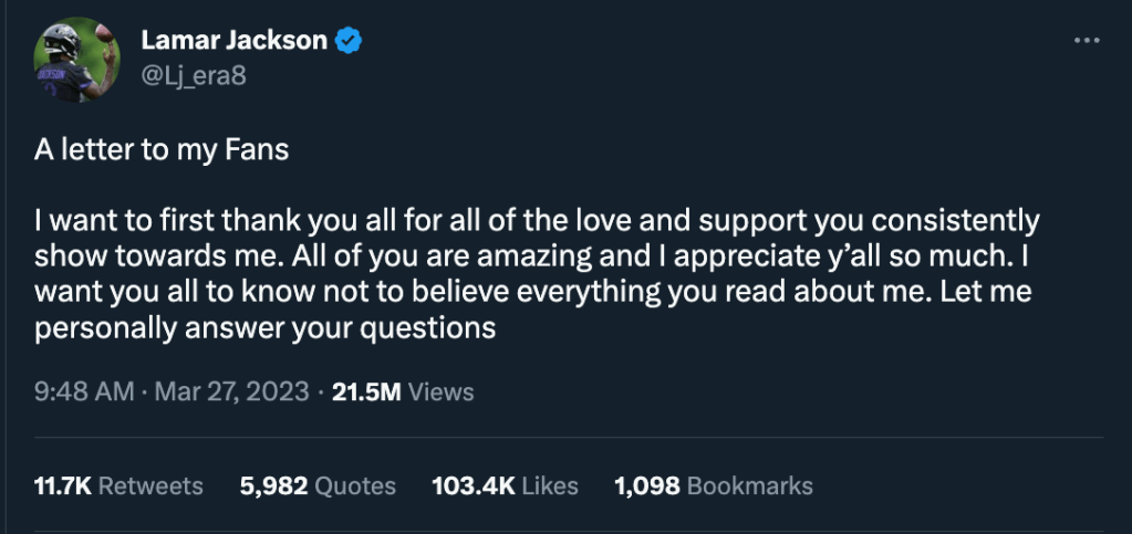 And so I think it’s Lamar’s severely misguided thinking regarding how contracts and negotiations work in the NFL that led him to believe he could be his own agent.