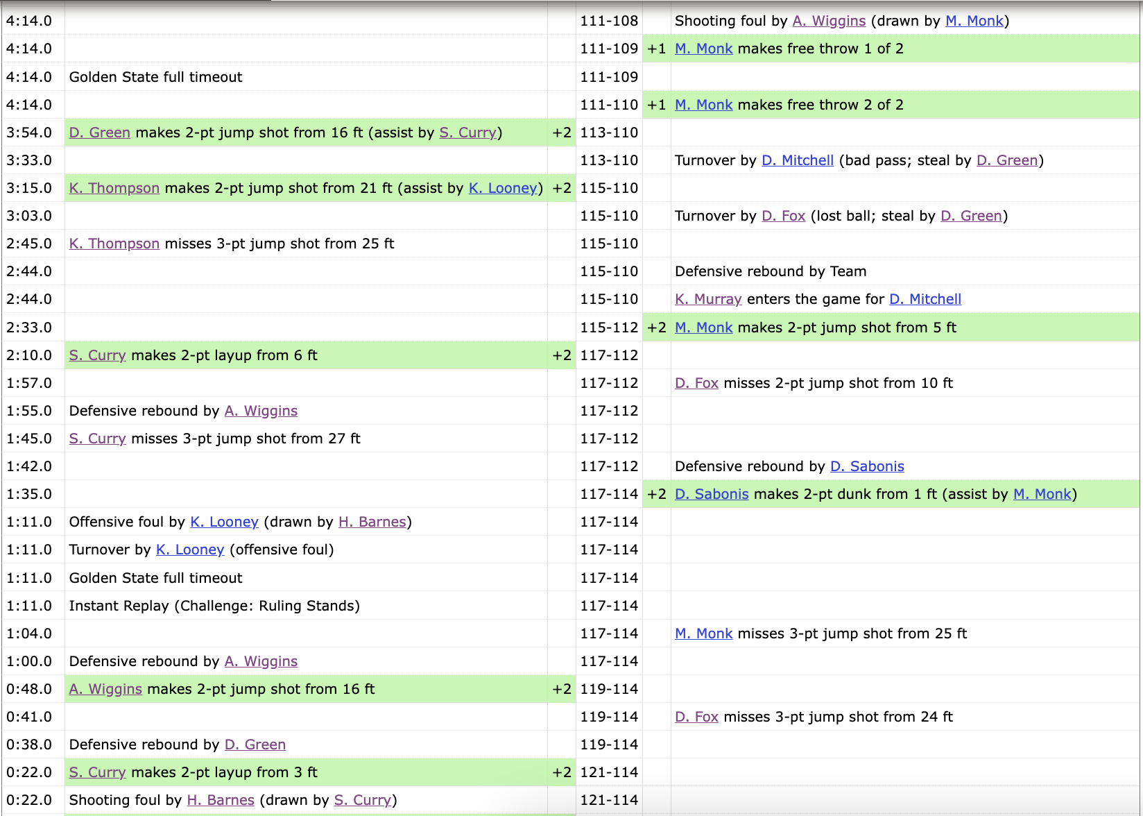 In last night’s Game 5 win in Sacramento, the Warriors had four players score 20+ points. Steph had 31 but he was just 2/10 from three (he had the floater going). Klay, Wiggins and Draymond were a combined 27/45 from the field and combined for 66 points.