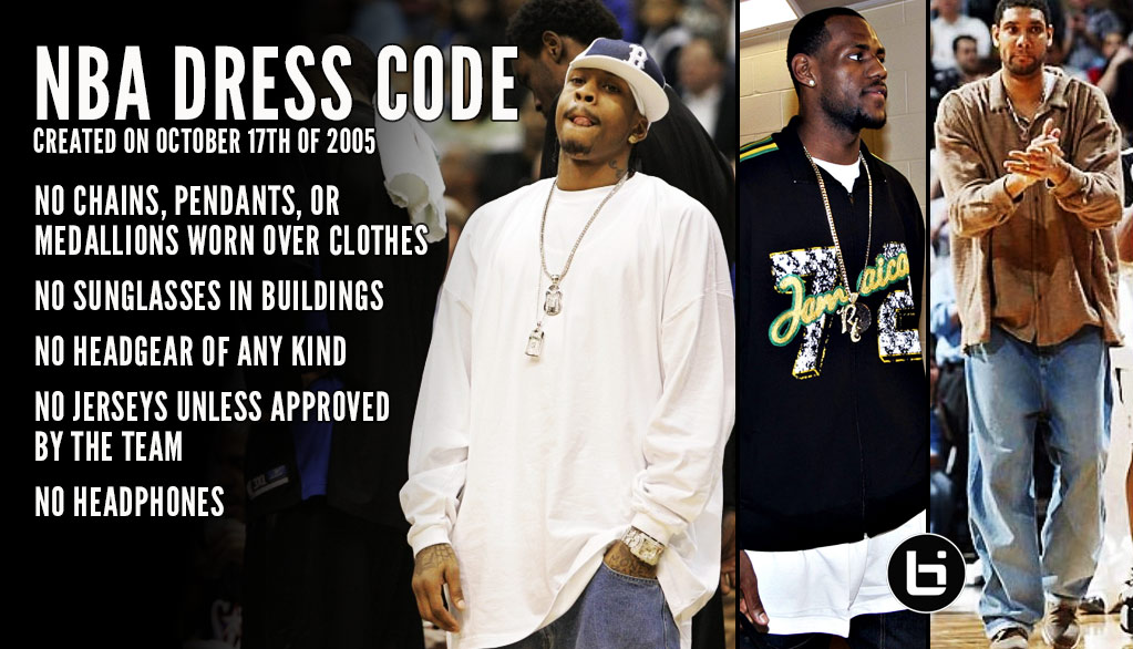 David Stern enacted a strict dress code in 2005. This was directly targeting the emergence of “gangsta rap culture” and aesthetic in the NBA, which mainly traces back to Iverson: