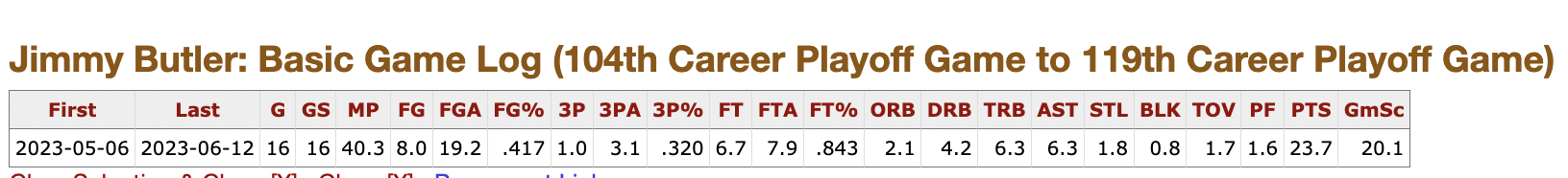 I know a sample size of 16 games is going to have much more mean regression than just a six game sample size, which could, in theory, be six outlier games. But Jimmy was never once under 50% from the floor in those first 6 games of the playoffs. In the remaining 16 games, he was only 50% or better from the floor three times.