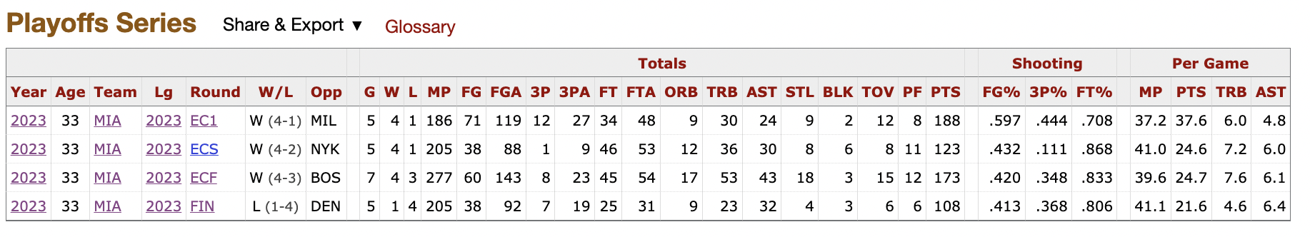 Miami as a team was 58/169 on three-pointers in the Finals, or 34.3%. That’s the main reason they lost the Finals.