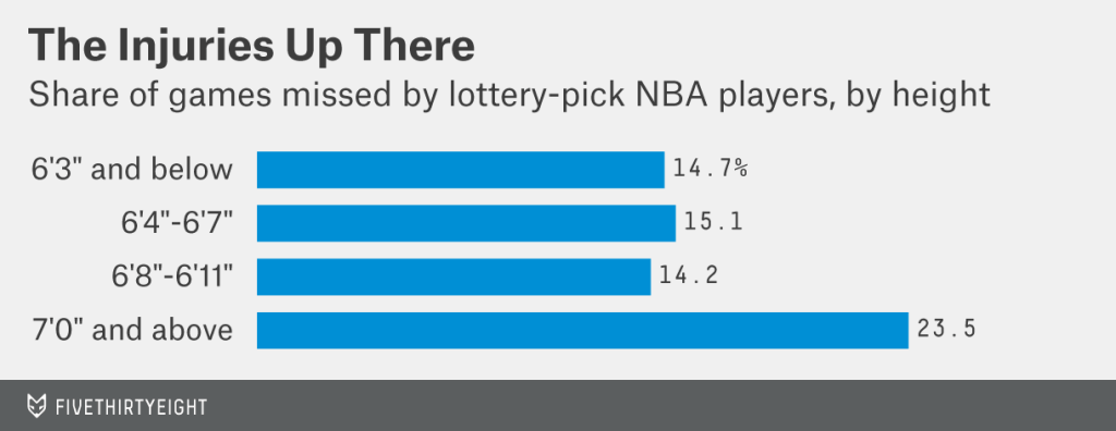 In 2014, FiveThirtyEight conducted a study that found that, since 2000, players 7 foot tall and up were at an elevated risk of injury: